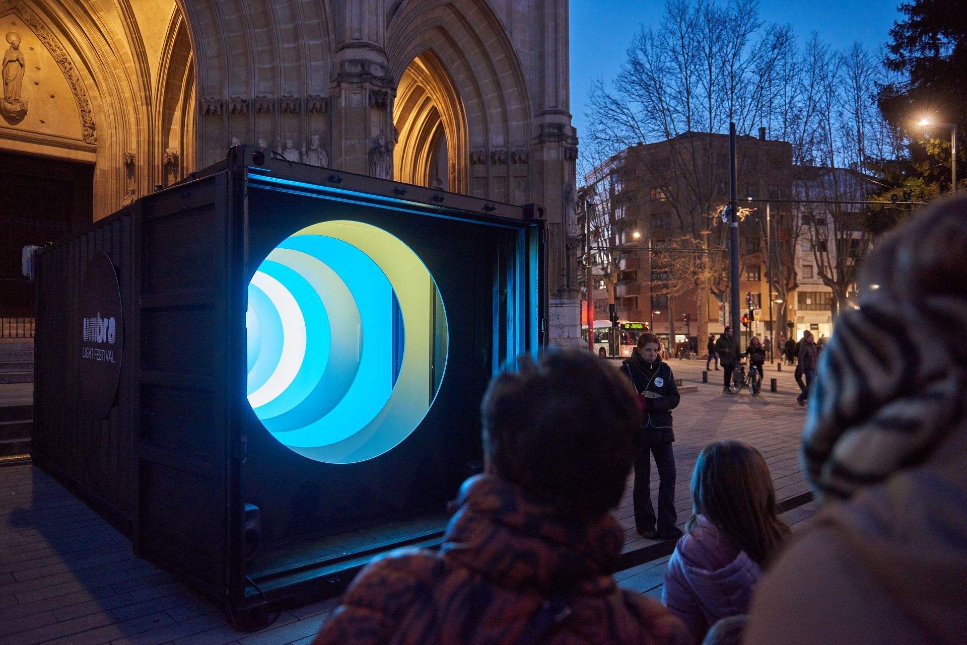 An iris, ten concentric layers of colour in a limited, basic and minimal space, which opens up a world of sensations. Light and colour are the only protagonists. Additive and subtractive mixtures, harmonies, saturation, brightness and reflections are the parameters, among others, that modulate the endless possibilities to create lighting atmospheres with the aim to create EMPATHY with the moods of the spectators and inspire their feelings.